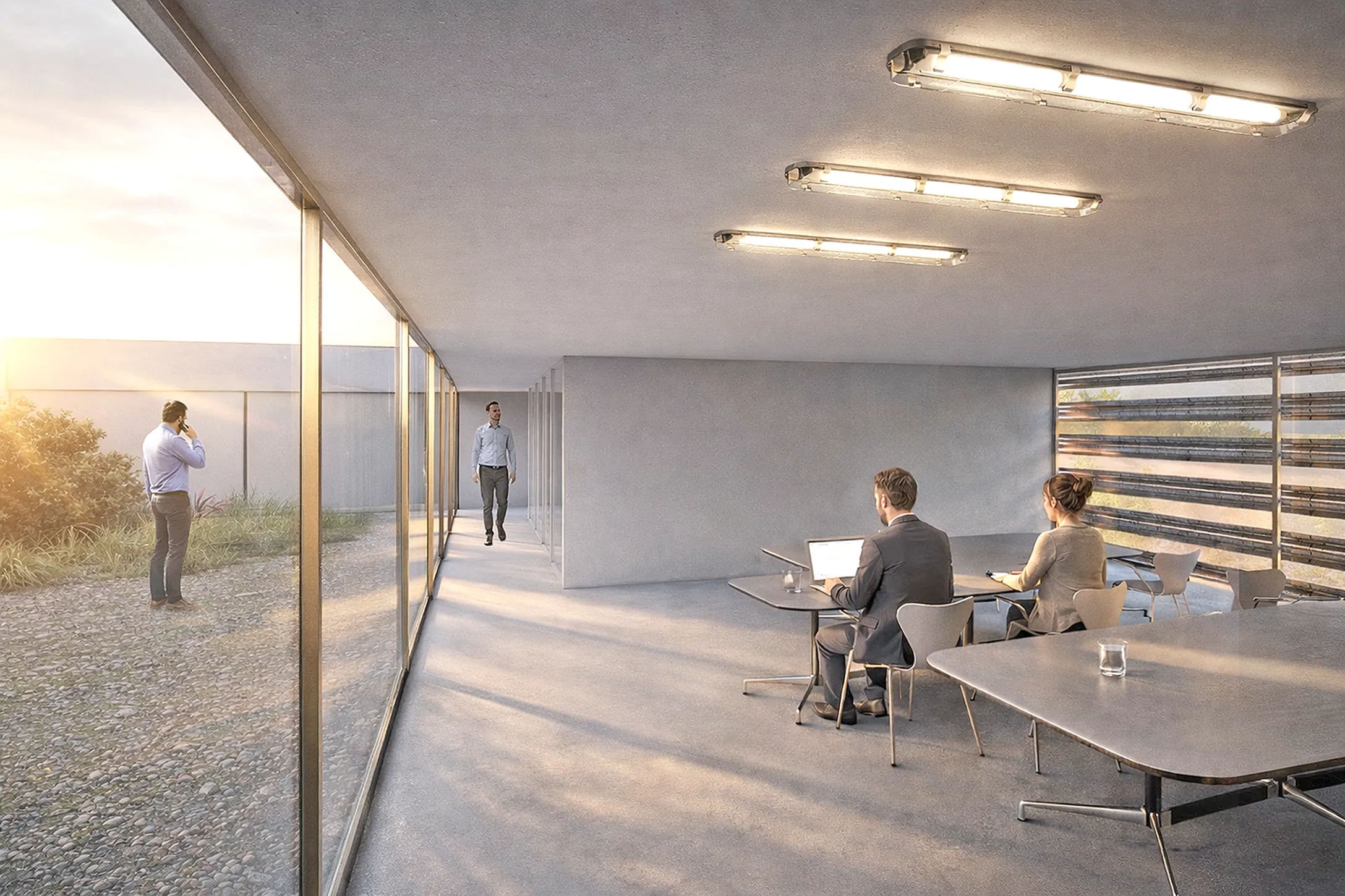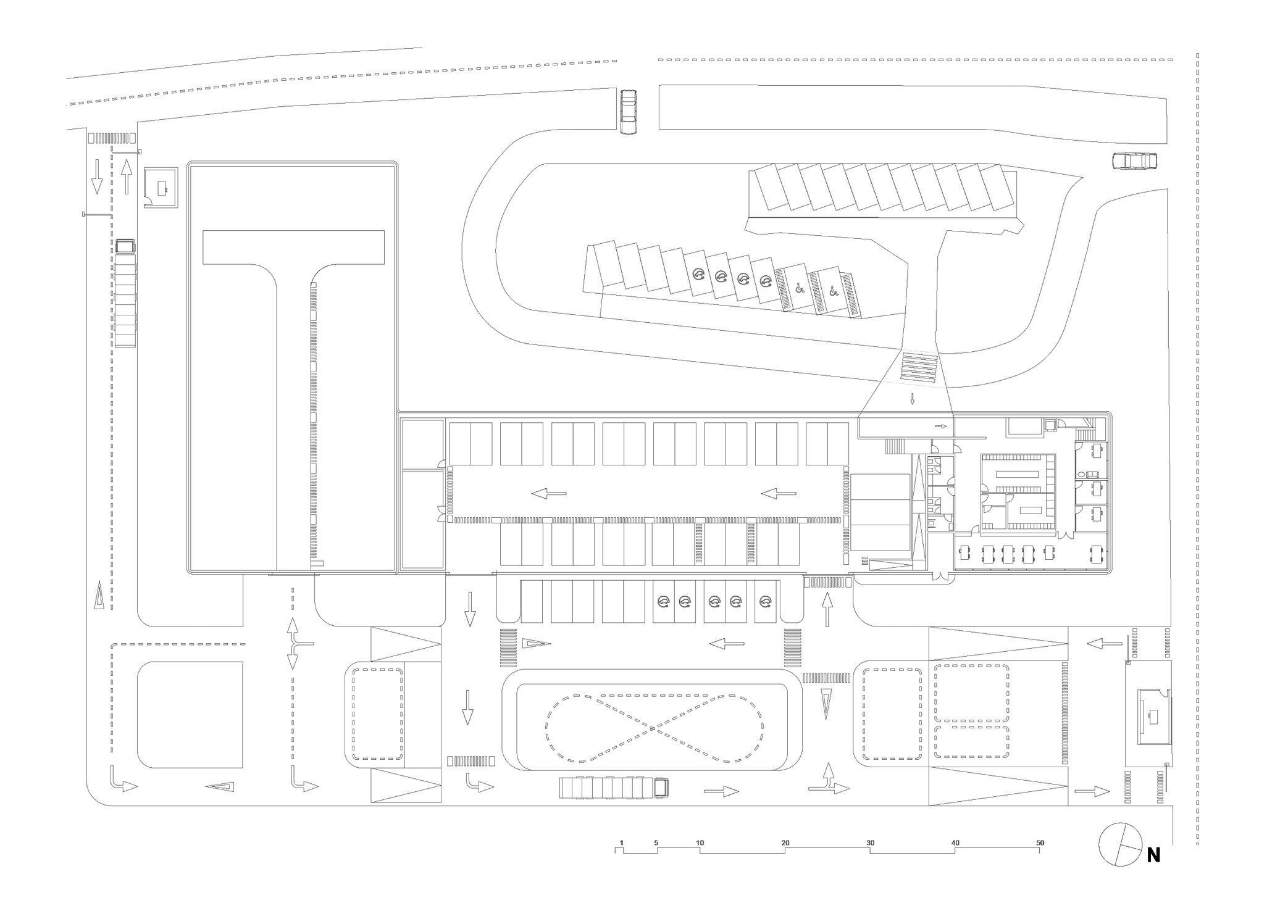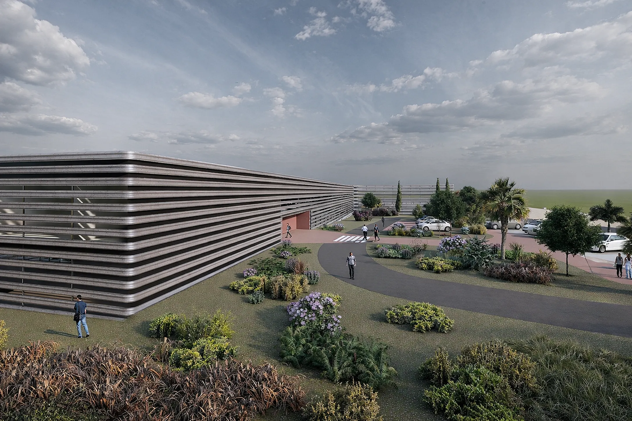 La propuesta define un centro de conservación y explotación de carreteras icónico, reconocible y fácilmente replicable, concebido como modelo de referencia para su implantación en toda Extremadura. Un edificio claro en su imagen, eficiente en su funcionamiento y alineado con una visión contemporánea de la infraestructura pública. El proyecto parte de una idea contundente: construir el depósito de vehículos de mantenimiento utilizando los mismos materiales que conforman las carreteras. Materiales asociados a resistencia, durabilidad, fluidez, curvas y velocidad, integrados de forma consciente en el diseño arquitectónico. Su reinterpretación evita soluciones neutras y transforma elementos técnicos en una arquitectura con carácter, identidad y valor representativo. El conjunto se completa con espacios exteriores ajardinados y especies vegetales autóctonas, integrados en la organización funcional del edificio. Estos espacios verdes mejoran la calidad ambiental, contribuyen a la reducción de la contaminación y refuerzan el compromiso del proyecto con la sostenibilidad y la adaptación climática del entorno.